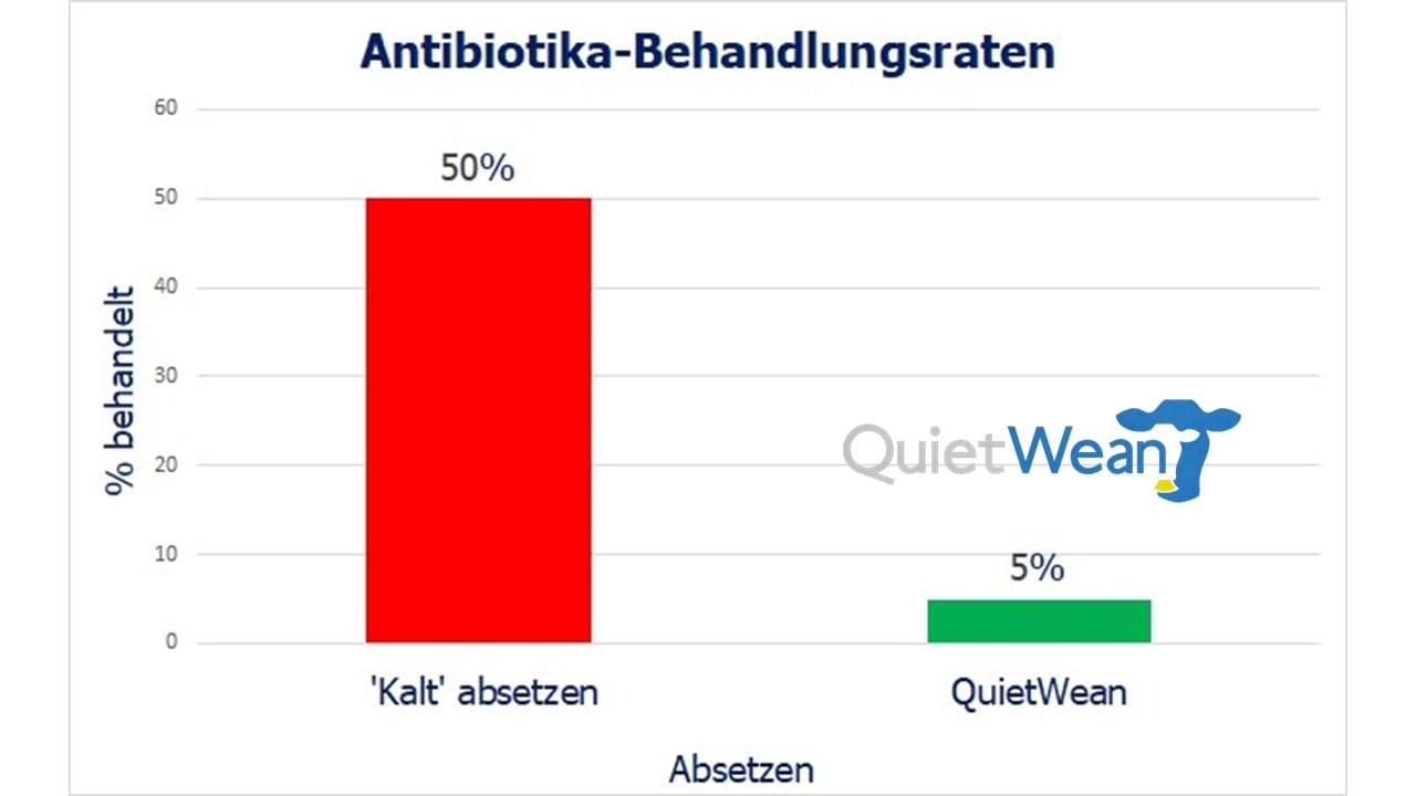 Kälber, die mit QuietWean von die Mutter entwöhnt wurden, verbringen 25% mehr Zeit mit Essen, 95% weniger Zeit mit Brüllen und siend wesentlich ruhiger als mit herkömmlichem Entwöhnen!