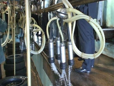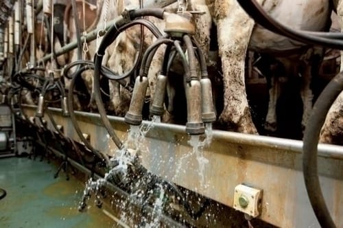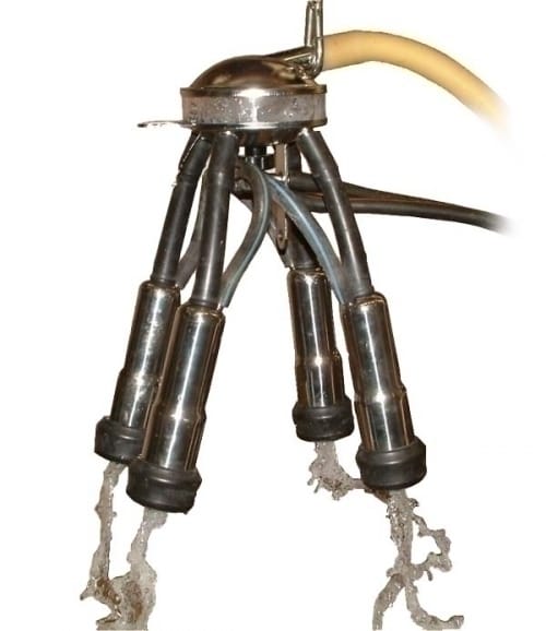 Nach jedem Melken wird das Melkzeug mit Wasser und Luft gespült.